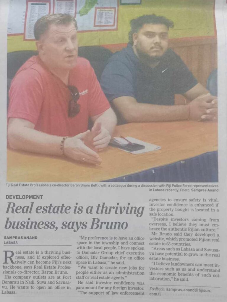 Real estate is a thriving business, and it explored effectively can become Fiji’s next backbone, says Real Estate Professionals co-director, Baron Bruno.